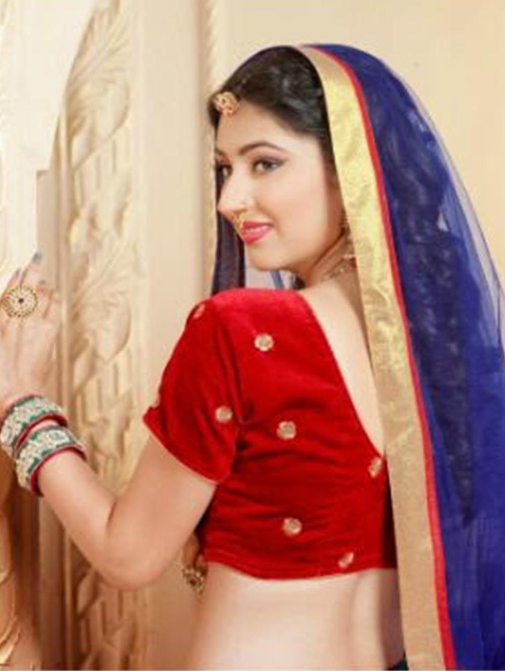51006Red and Beige Wedding Wear Valvet Lehenga Choli