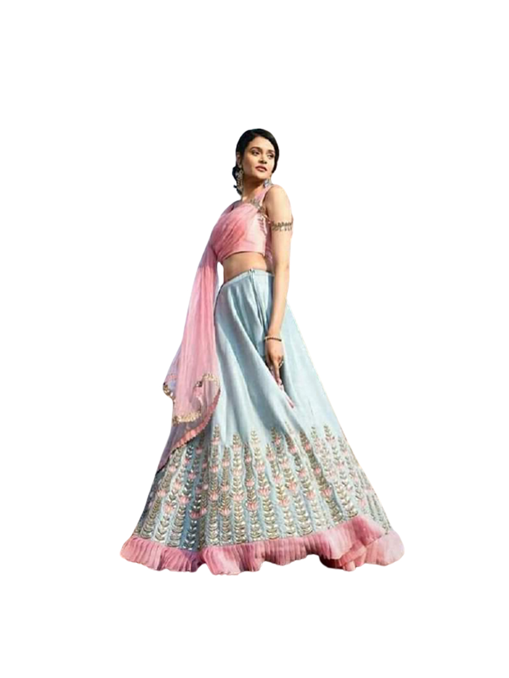 Light Blue Bangalory Satin Embroidered Lehenga Choli