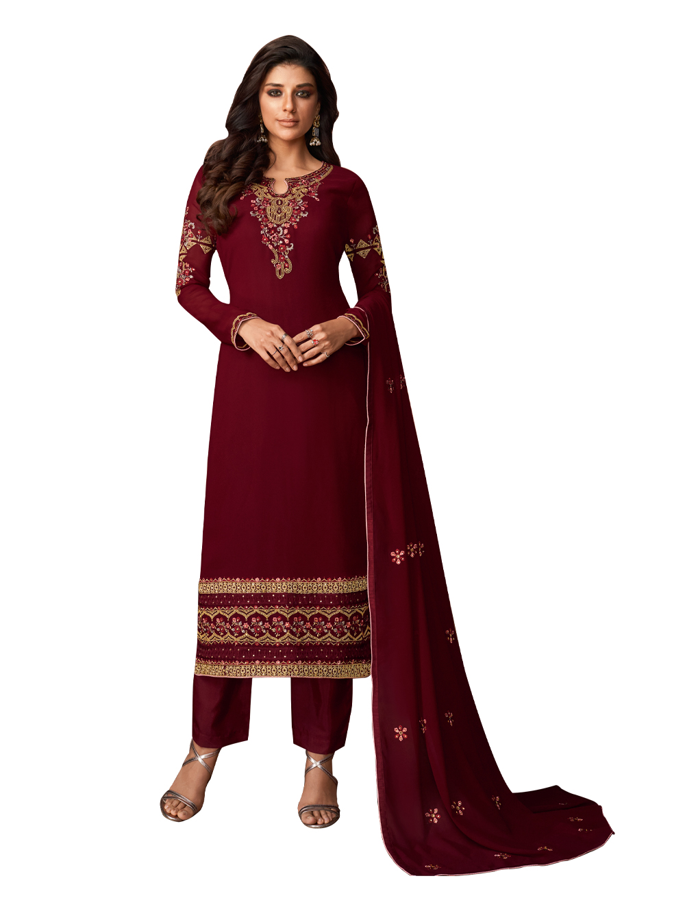 TOP : HEAVY FAUX GEORGETTE WITH EMBROIDERY WORK+ STONE